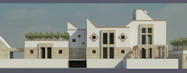 This is a house being rebuilt. Existing house was beyond the possibility of restoration, however after careful documentation of the old house, it was proposed to construct a new house. It is situated in a congested settlement of a small town. The town has an important historical significance. The site has a very narrow access and it is situated at the highest point of the old part of the town. House plan and its outer form express elements used from the old house and help re-live, experience its nostalgic past.